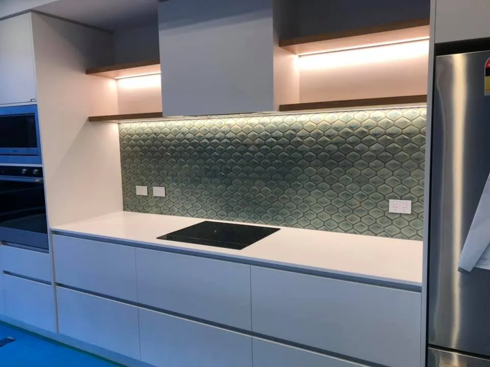 Achieve a stunning and practical kitchen with professionally installed splashbacks and flooring.